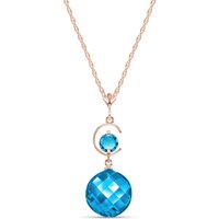 Blue Topaz Pendant Necklace handcrafted in rose gold plated 9ct gold. Two gemstones, total 5.8 ct. Round cut. The pendant hangs from a rose gold double link rope chain with spring clasp. Size: 30.2 x 32.3 mm (1.19 x 1.27 in). Material: 9ct Rose Gold. Total metal weight: 2.34 gr. 1 round cut blue topaz (10 x 10 mm) = 5.3 ct. 1 round cut blue topaz (5 x 5 mm) = 0.5 ct. Colour: Blue. Stone cut: Round Cut. Anniversary: 4th Anniversary. Birthstone: November.