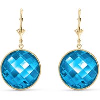 Blue Topaz Leverback Earrings handcrafted in solid gold. Two genuine topaz, total 46 ct for both earrings combined. Round cut. Size: 18.5 x 36.1 mm (0.73 x 1.42 in). Material: 9ct Gold. Total metal weight: 1.4 gr. 2 round cut blue topaz (18 x 18 mm) = 46 ct total for pair. Colour: Blue. Stone cut: Round Cut. Anniversary: 4th Anniversary. Birthstone: November.