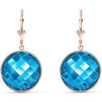 Leverback Earrings handcrafted in rose gold plated 9ct gold. Two genuine topaz, total 46 ct for both earrings combined. Round cut. Size: 18.5 x 36.1 mm (0.73 x 1.42 in). Material: 9ct Rose Gold. Total metal weight: 1.4 gr. 2 round cut blue topaz (18 x 18 mm) = 46 ct total for pair. Colour: Blue. Stone cut: Round Cut. Anniversary: 4th Anniversary. Birthstone: November.