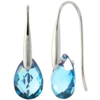 Blue Topaz Fish Hook Earrings handcrafted in solid white gold. Two genuine topaz, total 6 ct for both earrings combined. Briolette cut. Size: 8.1 x 27.2 mm (0.32 x 1.07 in). Material: 9ct White Gold. Total metal weight: 2.2 gr. 2 briolette cut blue topaz (12 x 8 mm) = 6 ct total for pair. Colour: Blue. Stone cut: Briolette Cut. Anniversary: 4th Anniversary. Birthstone: November.