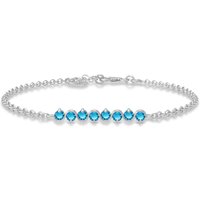 Blue Topaz Bracelet handcrafted in solid white gold. Eight genuine topaz, total 1.55 ct. Round cut. Fastened by white gold lobster clasp. One size – length adjustable from 6.5″ to 7.5″ (165 to 190 mm). Size: 5.3 mm (0.21 in). Material: 9ct White Gold. Total metal weight: 2.1 gr. 8 round cut blue topaz (3 x 3 mm) = 1.55 ct total. Colour: Blue. Stone cut: Round Cut. Anniversary: 4th Anniversary. Birthstone: November.