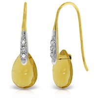 Citrine & Diamond Fish Hook Drop Earrings handcrafted in solid gold. Two genuine citrines, total 6 ct, six diamonds, total 0.06 ct for both earrings combined. Briolette cut. Size: 8.1 x 27.2 mm (0.32 x 1.07 in). Material: 9ct Gold. Total metal weight: 2.4 gr. 2 briolette cut citrines (12 x 8 mm) = 6 ct total for pair. 6 round cut diamonds (G colour, SI1 clarity) = 0.06 ct total for pair. Colour: Orange. Stone cut: Briolette Cut. Anniversary: 13th Anniversary. Birthstone: November.