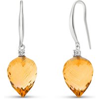 Citrine & Diamond Fish Hook Earrings handcrafted in solid white gold. Two genuine citrines, total 19 ct, two diamonds, total 0.1 ct for both earrings combined. Pointed briolette cut. Size: 10.2 x 34.8 mm (0.4 x 1.37 in). Material: 9ct White Gold. Total metal weight: 4.0 gr. 2 pointed briolette cut citrines (15 x 10 mm) = 19 ct total for pair. 2 round cut diamonds (K colour, I3 clarity) = 0.1 ct total for pair. Colour: Orange. Stone cut: Pointed Briolette Cut. Anniversary: 13th Anniversary. Birthstone: November.