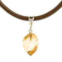Citrine & Diamond Pendant Necklace handcrafted in solid gold. Single 11.75 ct genuine citrine, single 0.01 ct diamond. Twisted briolette cut. The pendant hangs from a gold double link rope chain with spring clasp. Size: 12.7 x 27.9 mm (0.5 x 1.1 in). Material: 9ct Gold. Total metal weight: 5.64 gr. 1 twisted briolette cut citrine (15 x 13 mm) = 11.75 ct. 1 round brilliant cut diamond (K colour, I3 clarity) = 0.01 ct. Colour: Orange. Stone cut: Twisted Briolette Cut. Anniversary: 13th Anniversary. Birthstone: November.