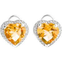 Citrine & Diamond French Clip Earrings handcrafted in solid white gold. Two genuine citrines, total 6.2 ct, 58 diamonds, total 0.28 ct for both earrings combined. Heart shaped. Size: 13 x 12.7 mm (0.51 x 0.5 in). Material: 9ct White Gold. Total metal weight: 4.3 gr. 2 heart shaped citrines (10 x 10 mm) = 6.2 ct total for pair. 58 round cut diamonds (K colour, I3 clarity) = 0.28 ct total for pair. Colour: Orange. Stone cut: Heart Shaped. Anniversary: 13th Anniversary. Birthstone: November.