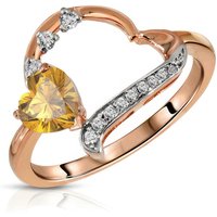 Citrine & Diamond Ring handcrafted in 9ct Rose Gold. Single 0.75 ct genuine citrine, twelve diamonds, total 0.2 ct. Heart shaped. Available from sizes H to Z including half sizes. Size: 13.5 x 23.6 mm (0.53 x 0.93 in). Material: 9ct Rose Gold. Total metal weight: 2.4 gr. 1 heart shaped citrine (6 x 6 mm) = 0.75 ct. 12 round cut diamonds (K colour, I3 clarity) = 0.2 ct total. Colour: Orange. Stone cut: Heart shaped. Anniversary: 13th Anniversary. Birthstone: November.
