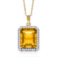 Citrine & Diamond Pendant Necklace handcrafted in solid gold. Single 5.2 ct genuine citrine, 40 diamonds, total 0.2 ct. Emerald cut. The pendant is suspended from a gold double link rope chain with spring clasp. Size: 13 x 22.4 mm (0.51 x 0.88 in). Material: 9ct Gold. Total metal weight: 3.54 gr. 1 emerald cut citrine (12 x 10 mm) = 5.2 ct. 40 round cut diamonds (K colour, I3 clarity) = 0.2 ct total. Colour: Orange. Stone cut: Emerald Cut. Anniversary: 13th Anniversary. Birthstone: November.