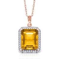Citrine & Diamond Pendant Necklace handcrafted in rose gold plated 9ct gold. Single 5.2 ct genuine citrine, 40 diamonds, total 0.2 ct. Emerald cut. The pendant is suspended from a rose gold double link rope chain with spring clasp. Size: 13 x 22.4 mm (0.51 x 0.88 in). Material: 9ct Rose Gold. Total metal weight: 3.54 gr. 1 emerald cut citrine (12 x 10 mm) = 5.2 ct. 40 round cut diamonds (K colour, I3 clarity) = 0.2 ct total. Colour: Orange. Stone cut: Emerald Cut. Anniversary: 13th Anniversary. Birthstone: November.