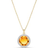 Citrine & Diamond Octavia Halo Pendant Necklace in 9ct Gold
