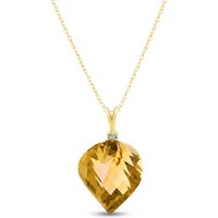 Citrine & Diamond Pendant Necklace handcrafted in solid gold. Single 11.75 ct genuine citrine, single 0.05 ct diamond. Twisted briolette cut. The pendant hangs from a gold double link rope chain with spring clasp. Size: 12.7 x 22.6 mm (0.5 x 0.89 in). Material: 9ct Gold. Total metal weight: 3.04 gr. 1 twisted briolette cut citrine (15 x 13 mm) = 11.75 ct. 1 round brilliant cut diamond (K colour, I3 clarity) = 0.05 ct. Colour: Orange. Stone cut: Twisted Briolette Cut. Anniversary: 13th Anniversary. Birthstone: November.