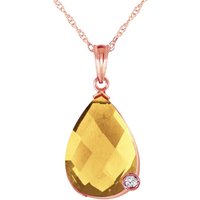 Citrine & Diamond Pendant Necklace handcrafted in rose gold plated 9ct gold. Single 5 ct genuine citrine, single 0.04 ct diamond. Briolette cut. The pendant hangs from a rose gold double link rope chain with spring clasp. Size: 11.2 x 22.4 mm (0.44 x 0.88 in). Material: 9ct Rose Gold. Total metal weight: 2.14 gr. 1 briolette cut citrine (15 x 10 mm) = 5 ct. 1 round brilliant cut diamond (G colour, SI2 clarity) = 0.04 ct. Colour: Orange. Stone cut: Briolette Cut. Anniversary: 13th Anniversary. Birthstone: November.