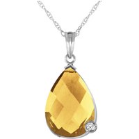 Citrine & Diamond Pendant Necklace handcrafted in solid white gold. Single 5 ct genuine citrine, single 0.04 ct diamond. Briolette cut. The pendant hangs from a white gold double link rope chain with spring clasp. Size: 11.2 x 22.4 mm (0.44 x 0.88 in). Material: 9ct White Gold. Total metal weight: 2.14 gr. 1 briolette cut citrine (15 x 10 mm) = 5 ct. 1 round brilliant cut diamond (G colour, SI2 clarity) = 0.04 ct. Colour: Orange. Stone cut: Briolette Cut. Anniversary: 13th Anniversary. Birthstone: November.