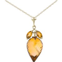 Citrine Pendant Necklace handcrafted in solid gold. Three gemstones, total 10 ct. Pointed briolette cut. The pendant hangs from a gold double link rope chain with spring clasp. Size: 10.2 x 27.9 mm (0.4 x 1.1 in). Material: 9ct Gold. Total metal weight: 3.44 gr. 1 pointed briolette cut citrine (15 x 10 mm) = 9.5 ct. 2 marquise cut citrines (6 x 3 mm) = 0.5 ct total. Colour: Orange. Stone cut: Pointed Briolette Cut. Anniversary: 13th Anniversary. Birthstone: November.