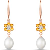 Citrine, Pearl & Diamond Clara Daisy Drop Earrings in 9ct Rose Gold