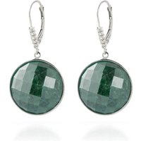 Corundum & Diamond Leverback Earrings handcrafted in solid white gold. Two genuine corundum, total 46 ct, ten diamonds, total 0.15 ct for both earrings combined. Round cut. Size: 18.5 x 36.6 mm (0.73 x 1.44 in). Material: 9ct White Gold. Total metal weight: 9.9 gr. 2 round cut corundum = 46 ct total for pair. 10 round cut diamonds (G colour, SI2 clarity) = 0.15 ct total for pair. Colour: Green. Stone cut: Round Cut.