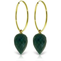 Corundum Drop Earrings handcrafted in solid gold. Two genuine corundum, total 25.8 ct for both earrings combined. Pointed briolette cut. Size: 9.9 x 40.6 mm (0.39 x 1.6 in). Material: 9ct Gold. Total metal weight: 5.0 gr. 2 pointed briolette cut corundum (15 x 10 mm) = 25.8 ct total for pair. Colour: Green. Stone cut: Pointed Briolette Cut.