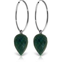 Corundum Drop Earrings handcrafted in solid white gold. Two genuine corundum, total 25.8 ct for both earrings combined. Pointed briolette cut. Size: 9.9 x 40.6 mm (0.39 x 1.6 in). Material: 9ct White Gold. Total metal weight: 5.0 gr. 2 pointed briolette cut corundum (15 x 10 mm) = 25.8 ct total for pair. Colour: Green. Stone cut: Pointed Briolette Cut.