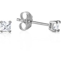 Diamond Stud Earrings handcrafted in solid white gold. Two diamonds, total 0.25 ct for both earrings combined. Princess cut. Post with friction back to fasten. Size: 2.8 x 2.8 mm (0.11 x 0.11 in). Material: 9ct White Gold. Total metal weight: 0.4 gr. 2 princess cut diamonds (K colour, SI2 clarity) = 0.25 ct total for pair. Colour: Clear. Diamond colour: K. Stone cut: Princess Cut. Anniversary: 10th Anniversary, 60th Anniversary. Birthstone: April.