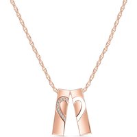 Diamond Pendant Necklace handcrafted in rose gold plated 9ct gold. Eleven diamonds, total 0.17 ct. Round cut. The pendant is suspended from a rose gold double link rope chain with spring clasp. Size: 11.9 x 22.9 mm (0.47 x 0.9 in). Material: 9ct Rose Gold. Total metal weight: 3.34 gr. 11 round cut diamonds (J colour, I3 clarity) = 0.17 ct total. Colour: Clear. Diamond colour: J. Stone cut: Round Cut. Anniversary: 10th Anniversary, 60th Anniversary. Birthstone: April.