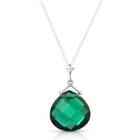 Lab Grown Emerald Pendant Necklace handcrafted in solid white gold. Single 7 ct lab grown emerald. Briolette cut. The pendant is suspended from a white gold double link rope chain with spring clasp. Size: 14 x 25.4 mm (0.55 x 1 in). Material: 9ct White Gold. Total metal weight: 2.24 gr. 1 briolette cut lab grown emerald (14 x 14 mm) = 7 ct. Colour: Green. Stone cut: Briolette Cut. Anniversary: 20th Anniversary, 35th Anniversary. Birthstone: May.
