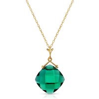 Lab Grown Emerald Pendant Necklace handcrafted in solid gold. Single 5.6 ct lab grown emerald. Cushion cut. The pendant hangs from a gold double link rope chain with spring clasp. Size: 14 x 25.4 mm (0.55 x 1 in). Material: 9ct Gold. Total metal weight: 1.94 gr. 1 cushion cut lab grown emerald (12 x 12 mm) = 5.6 ct. Colour: Green. Stone cut: Cushion Cut. Anniversary: 20th Anniversary, 35th Anniversary. Birthstone: May.