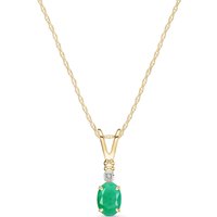 Emerald & Diamond Pendant Necklace handcrafted in solid gold. Single 0.5 ct genuine emerald, single 0.01 ct diamond. Oval cut. The pendant hangs from a gold double link rope chain with spring clasp. Size: 4.6 x 16.5 mm (0.18 x 0.65 in). Material: 9ct Gold. Total metal weight: 1.44 gr. 1 oval cut emerald (6 x 4 mm) = 0.5 ct. 1 round brilliant cut diamond (I colour, SI2 clarity) = 0.01 ct. Colour: Green. Stone cut: Oval Cut. Anniversary: 20th Anniversary, 35th Anniversary. Birthstone: May.