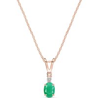 Emerald & Diamond Pendant Necklace handcrafted in rose gold plated 9ct gold. Single 0.5 ct genuine emerald, single 0.01 ct diamond. Oval cut. The pendant hangs from a rose gold double link rope chain with spring clasp. Size: 4.6 x 16.5 mm (0.18 x 0.65 in). Material: 9ct Rose Gold. Total metal weight: 1.44 gr. 1 oval cut emerald (6 x 4 mm) = 0.5 ct. 1 round brilliant cut diamond (I colour, SI2 clarity) = 0.01 ct. Colour: Green. Stone cut: Oval Cut. Anniversary: 20th Anniversary, 35th Anniversary. Birthstone: May.