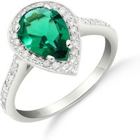 Lab Grown Emerald & Diamond Ring handcrafted in solid 18ct white gold. Single 1.45 ct lab grown emerald, 45 diamonds, total 0.24 ct. Pear cut. Available from sizes H to Z including half sizes. Size: 14 mm (0.55 in). Material: 18ct White Gold. Total metal weight: 3.6 gr. 1 pear cut lab grown emerald (7 x 10 mm) = 1.45 ct. 45 round cut diamonds (K colour, I3 clarity) = 0.24 ct total. Colour: Green. Stone cut: Pear Cut. Anniversary: 20th Anniversary, 35th Anniversary. Birthstone: May.