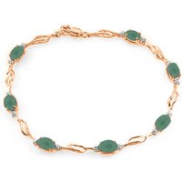 Emerald & Diamond Tennis Bracelet handcrafted in rose gold plated 9ct gold. Seven genuine emeralds, total 3.5 ct, two diamonds, total 0.01 ct. Oval cut. Fastened by rose gold lobster clasp. Fits wrist up to 8.5″. Size: 4.3 mm (0.17 in). Material: 9ct Rose Gold. Total metal weight: 4.4 gr. 7 oval cut emeralds (6 x 4 mm) = 3.5 ct total. 2 round cut diamonds (K colour, SI2 clarity) = 0.01 ct total. Colour: Green. Stone cut: Oval Cut. Anniversary: 20th Anniversary, 35th Anniversary. Birthstone: May.