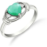 Emerald & Diamond Ring handcrafted in solid sterling silver. Single 1 ct genuine emerald, two diamonds, total 0.01 ct. Heart shaped. Available from sizes H to Z including half sizes. Size: 7.4 mm (0.29 in). Material: Sterling Silver. Total metal weight: 2.4 gr. 1 heart shaped emerald (6 x 6 mm) = 1 ct. 2 round cut diamonds (K colour, I3 clarity) = 0.01 ct total. Colour: Green. Stone cut: Heart Shaped. Anniversary: 20th Anniversary, 35th Anniversary. Birthstone: May.