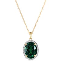Lab Grown Emerald & Diamond Pendant Necklace handcrafted in solid gold. Single 0.18 ct lab grown emerald, 36 diamonds, total 0.18 ct. Oval cut. The pendant hangs from a gold double link rope chain with spring clasp. Size: 13.2 x 22.6 mm (0.52 x 0.89 in). Material: 9ct Gold. Total metal weight: 3.84 gr. 1 oval cut lab grown emerald (14 x 10 mm) = 0.18 ct. 36 round cut diamonds (K colour, I3 clarity) = 0.18 ct total. Colour: Green. Stone cut: Oval Cut. Anniversary: 20th Anniversary, 35th Anniversary. Birthstone: May.