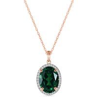 Lab Grown Emerald & Diamond Pendant Necklace handcrafted in rose gold plated 9ct gold. Single 0.18 ct lab grown emerald, 36 diamonds, total 0.18 ct. Oval cut. The pendant is suspended from a rose gold double link rope chain with spring clasp. Size: 13.2 x 22.6 mm (0.52 x 0.89 in). Material: 9ct Rose Gold. Total metal weight: 3.84 gr. 1 oval cut lab grown emerald (14 x 10 mm) = 0.18 ct. 36 round cut diamonds (K colour, I3 clarity) = 0.18 ct total. Colour: Green. Stone cut: Oval Cut. Anniversary: 20th Anniversary, 35th Anniversary. Birthstone: May.