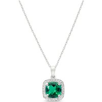 Lab Grown Emerald & Diamond Pendant Necklace handcrafted in solid white gold. Single 1.6 ct lab grown emerald, 26 diamonds, total 0.14 ct. Cushion cut. The pendant is suspended from a white gold double link rope chain with spring clasp. Size: 11.2 x 17.8 mm (0.44 x 0.7 in). Material: 9ct White Gold. Total metal weight: 2.94 gr. 1 cushion cut lab grown emerald (8 x 8 mm) = 1.6 ct. 26 round cut diamonds (K colour, I3 clarity) = 0.14 ct total. Colour: Green. Stone cut: Cushion Cut. Anniversary: 20th Anniversary, 35th Anniversary. Birthstone: May.