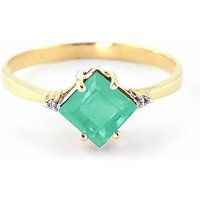 Emerald & Diamond Ring handcrafted in solid 18ct gold. Single 1.45 ct genuine emerald, two diamonds, total 0.01 ct. Square cut. Available from sizes H to Z including half sizes. Size: 8.9 mm (0.35 in). Material: 18ct Gold. Total metal weight: 2.0 gr. 1 square cut emerald (6 x 6 mm) = 1.45 ct. 2 round cut diamonds (K colour, I3 clarity) = 0.01 ct total. Colour: Green. Stone cut: Square Cut. Anniversary: 20th Anniversary, 35th Anniversary. Birthstone: May.