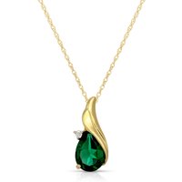 Lab Grown Emerald & Diamond Pendant Necklace handcrafted in solid gold. Single 1.45 ct lab grown emerald, single 0.03 ct diamond. Pear cut. The pendant hangs from a gold double link rope chain with spring clasp. Size: 7.9 x 17.8 mm (0.31 x 0.7 in). Material: 9ct Gold. Total metal weight: 1.94 gr. 1 pear cut lab grown emerald (10 x 7 mm) = 1.45 ct. 1 round brilliant cut diamond (J colour, SI2 clarity) = 0.03 ct. Colour: Green. Stone cut: Pear Cut. Anniversary: 20th Anniversary, 35th Anniversary. Birthstone: May.