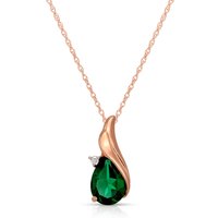 Lab Grown Emerald & Diamond Pendant Necklace handcrafted in rose gold plated 9ct gold. Single 1.45 ct lab grown emerald, single 0.03 ct diamond. Pear cut. The pendant hangs from a rose gold double link rope chain with spring clasp. Size: 7.9 x 17.8 mm (0.31 x 0.7 in). Material: 9ct Rose Gold. Total metal weight: 1.94 gr. 1 pear cut lab grown emerald (10 x 7 mm) = 1.45 ct. 1 round brilliant cut diamond (J colour, SI2 clarity) = 0.03 ct. Colour: Green. Stone cut: Pear Cut. Anniversary: 20th Anniversary, 35th Anniversary. Birthstone: May.