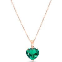 Lab Grown Emerald Pendant Necklace handcrafted in rose gold plated 9ct gold. Single 2.75 ct lab grown emerald. Heart shaped. The pendant hangs from a rose gold double link rope chain with spring clasp. Size: 10.2 x 17.8 mm (0.4 x 0.7 in). Material: 9ct Rose Gold. Total metal weight: 2.54 gr. 1 heart shaped lab grown emerald (12 x 12 mm) = 2.75 ct. Colour: Green. Stone cut: Heart Shaped. Anniversary: 20th Anniversary, 35th Anniversary. Birthstone: May.