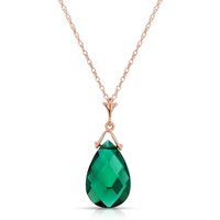 Lab Grown Emerald Pendant Necklace handcrafted in rose gold plated 9ct gold. Single 4.7 ct lab grown emerald. Briolette cut. The pendant hangs from a rose gold double link rope chain with spring clasp. Size: 10.2 x 24.4 mm (0.4 x 0.96 in). Material: 9ct Rose Gold. Total metal weight: 1.94 gr. 1 briolette cut lab grown emerald (15 x 10 mm) = 4.7 ct. Colour: Green. Stone cut: Briolette Cut. Anniversary: 20th Anniversary, 35th Anniversary. Birthstone: May.