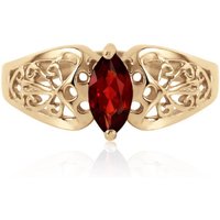 Garnet Ring handcrafted in solid 18ct gold. Single 0.2 ct genuine garnet. Marquise cut. Available from sizes H to Z including half sizes. Size: 7.6 mm (0.3 in). Material: 18ct Gold. Total metal weight: 2.9 gr. 1 marquise cut garnet (6 x 3 mm) = 0.2 ct. Colour: Red. Stone cut: Marquise Cut. Anniversary: 2nd Anniversary. Birthstone: January.