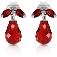 Garnet Stud Earrings handcrafted in solid white gold. Six gemstones, total 3.4 ct for both earrings combined. Briolette cut. Post with friction back to fasten. Size: 7.6 x 11.4 mm (0.3 x 0.45 in). Material: 9ct White Gold. Total metal weight: 1.0 gr. 2 briolette cut garnets (7 x 5 mm) = 3 ct total for pair. 4 marquise cut garnets (4 x 2 mm) = 0.4 ct total for pair. Colour: Red. Stone cut: Briolette Cut. Anniversary: 2nd Anniversary. Birthstone: January.