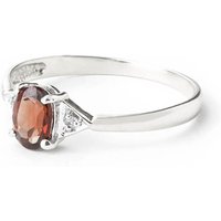 Garnet & Diamond Ring handcrafted in solid 18ct white gold. Single 0.45 ct genuine garnet, two diamonds, total 0.01 ct. Oval cut. Available from sizes H to Z including half sizes. Size: 6.1 mm (0.24 in). Material: 18ct White Gold. Total metal weight: 1.9 gr. 1 oval cut garnet (6 x 4 mm) = 0.45 ct. 2 round cut diamonds (K colour, SI2 clarity) = 0.01 ct total. Colour: Red. Stone cut: Oval Cut. Anniversary: 2nd Anniversary. Birthstone: January.