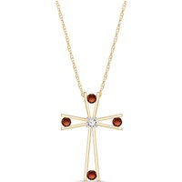 Garnet & Diamond Cross Pendant Necklace handcrafted in solid gold. Four genuine garnets, total 0.4 ct, single 0.03 ct diamond. Round cut. The pendant is suspended from a gold double link rope chain with spring clasp. Size: 20.3 x 30 mm (0.8 x 1.18 in). Material: 9ct Gold. Total metal weight: 1.94 gr. 4 round cut garnets = 0.4 ct total. 1 round brilliant cut diamond (H colour, SI2 clarity) = 0.03 ct. Colour: Red. Stone cut: Round Cut. Anniversary: 2nd Anniversary. Birthstone: January.