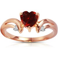 Garnet & Diamond Ring handcrafted in solid 18ct rose gold. Single 1.25 ct genuine garnet, two diamonds, total 0.01 ct. Heart shaped. Available from sizes H to Z including half sizes. Size: 6.6 mm (0.26 in). Material: 18ct Rose Gold. Total metal weight: 2.6 gr. 1 heart shaped garnet (6 x 6 mm) = 1.25 ct. 2 round cut diamonds (K colour, SI2 clarity) = 0.01 ct total. Colour: Red. Stone cut: Heart Shaped. Anniversary: 2nd Anniversary. Birthstone: January.