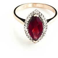 Garnet & Diamond Ring handcrafted in solid rose gold. Single 2 ct genuine garnet, 30 diamonds, total 0.15 ct. Marquise cut. Available from sizes H to Z including half sizes. Size: 16.3 mm (0.64 in). Material: 9ct Rose Gold. Total metal weight: 2.8 gr. 1 marquise cut garnet (12 x 6 mm) = 2 ct. 30 round cut diamonds (K colour, I3 clarity) = 0.15 ct total. Colour: Red. Stone cut: Marquise Cut. Anniversary: 2nd Anniversary. Birthstone: January.