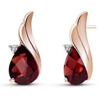 Garnet & Diamond Stud Earrings handcrafted in rose gold plated 9ct gold. Two genuine garnets, total 4 ct, two diamonds, total 0.06 ct for both earrings combined. Pear cut. Post with friction back to fasten. Size: 7.9 x 17.8 mm (0.31 x 0.7 in). Material: 9ct Rose Gold. Total metal weight: 3.9 gr. 2 pear cut garnets = 4 ct total for pair. 2 round cut diamonds (K colour, I3 clarity) = 0.06 ct total for pair. Colour: Red. Stone cut: Pear Cut. Anniversary: 2nd Anniversary. Birthstone: January.