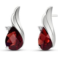 Garnet & Diamond Stud Earrings handcrafted in solid white gold. Two genuine garnets, total 4 ct, two diamonds, total 0.06 ct for both earrings combined. Pear cut. Post with friction back to fasten. Size: 7.9 x 17.8 mm (0.31 x 0.7 in). Material: 9ct White Gold. Total metal weight: 3.9 gr. 2 pear cut garnets = 4 ct total for pair. 2 round cut diamonds (K colour, I3 clarity) = 0.06 ct total for pair. Colour: Red. Stone cut: Pear Cut. Anniversary: 2nd Anniversary. Birthstone: January.