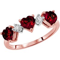 Garnet & Diamond Victoria Trio Heart Ring in 9ct Rose Gold