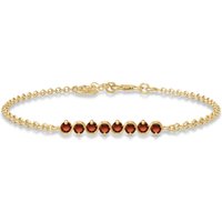 Garnet Bracelet handcrafted in solid gold. Eight genuine garnets, total 1.55 ct. Round cut. Fastened by gold lobster clasp. One size – length adjustable from 6.5″ to 7.5″ (165 to 190 mm). Size: 5.3 mm (0.21 in). Material: 9ct Gold. Total metal weight: 3.6 gr. 8 round cut garnets (3 x 3 mm) = 1.55 ct total. Colour: Red. Stone cut: Round Cut. Anniversary: 2nd Anniversary. Birthstone: January.