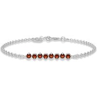 Garnet Bracelet handcrafted in solid white gold. Eight genuine garnets, total 1.55 ct. Round cut. Fastened by white gold lobster clasp. One size – length adjustable from 6.5″ to 7.5″ (165 to 190 mm). Size: 5.3 mm (0.21 in). Material: 9ct White Gold. Total metal weight: 3.6 gr. 8 round cut garnets (3 x 3 mm) = 1.55 ct total. Colour: Red. Stone cut: Round Cut. Anniversary: 2nd Anniversary. Birthstone: January.