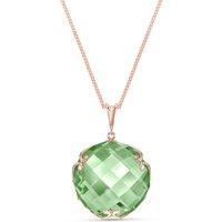 Green Amethyst Pendant Necklace handcrafted in rose gold plated 9ct gold. Single 18 ct genuine amethyst. Round cut. The pendant is suspended from a rose gold double link rope chain with spring clasp. Size: 20.1 x 28.2 mm (0.79 x 1.11 in). Material: 9ct Rose Gold. Total metal weight: 5.34 gr. 1 round cut green amethyst (18 x 18 mm) = 18 ct. Colour: Green. Stone cut: Round Cut. Anniversary: 6th Anniversary. Birthstone: February.